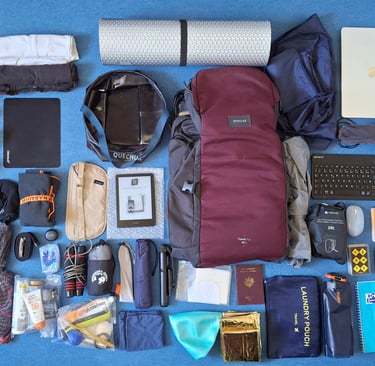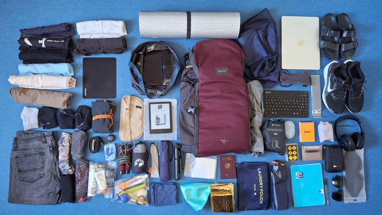 ça fait maintenant 2 ans que je suis nomade, voyagé dans 17 pays et on me demande souvent ce que j'emporte avec moi.